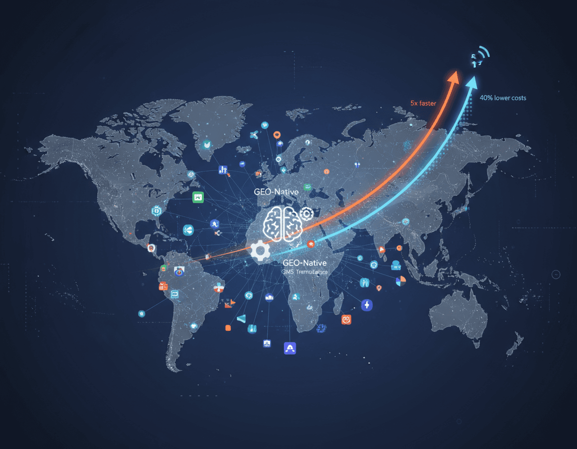 Global enterprises implementing modern CMS translation technology achieve 5x faster time-to-market and 40% lower localization costs when deploying content across 57+ languages. This scale requires combining headless CMS architecture, translation management systems, and AI agents to automate workflows while maintaining quality and GEO visibility for AI search engines.